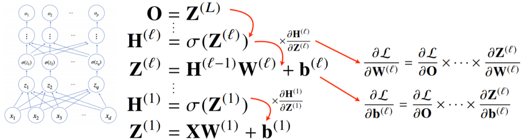 - 손실함수를 $L$이라 했을 때 역전파는 $\sigma L/\sigma W ^{(l)}$ 정보 계산할 때 사용된다 (손실함수에 대한 미분)