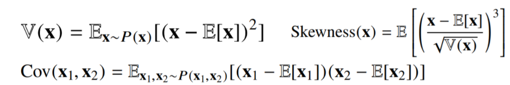 - 기대값을 이용해 분산, 첨도, 공분산 등 여러 통계량 계산 가능