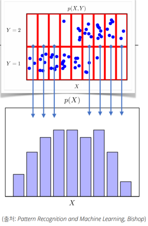 - 주변확률분포 $P(\textbf{x})$는 결합분포 $P(\textbf{x}, y)$에서 유도 가능하다