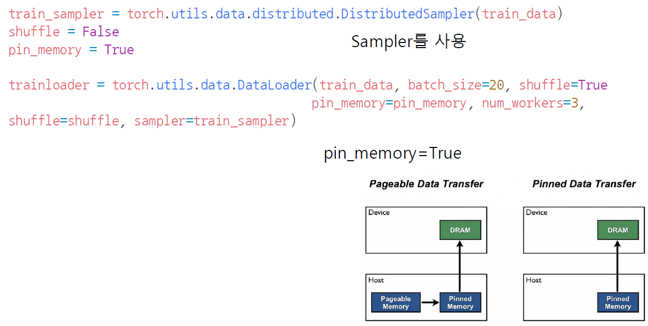 1. sampler 사용, shuffle=False, pin_memory = True