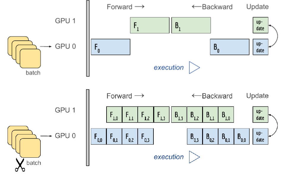 즉, 아래와 케이스와 같이, 파이프라인을 통해 두 GPU가 각기 다른 처리를 동시에 진행할 수 있도록 해야 한다.