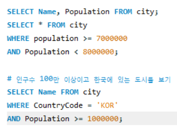 - WHERE Name IN('Seoul', 'Busan')