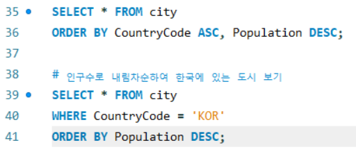 - ORDER BY 구문 혼합해 사용 가능 ( 순서대로 적용)