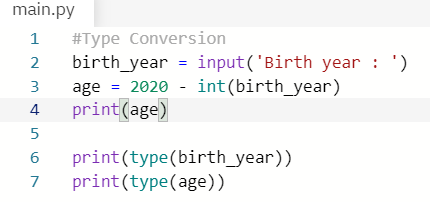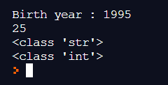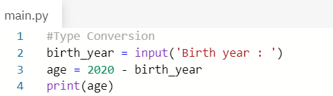 이후 age를 계산할때 2020 은 <int> birth_year 변수는 <str> 이기 때문에 오류가 발생합니다.