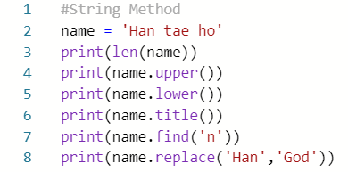 <str> class 는 여러가지 methods 를 제공하는데 method를 호출하는 방법은 마침표 . 를 이용합니다.