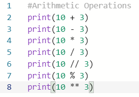 파이썬은 위와 같은 산술 수식을 제공합니다.