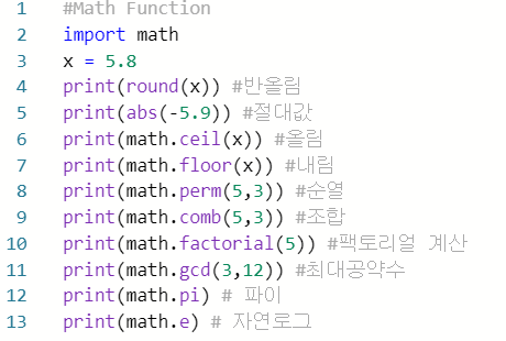google 에서 python 3 math module 검색하시면 다른 method 도 찾아 보실 수 있습니다.