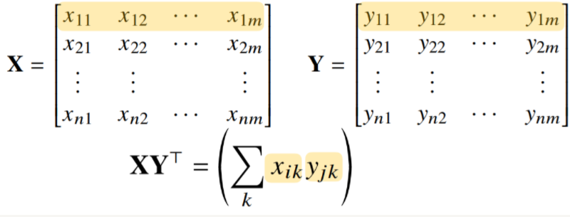 - 수학에선 보통 $tr(XY^T)$을 내적으로 계산