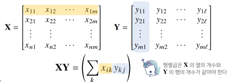- X의 열의 개수와 Y의 행의 개수가 같아야 한다