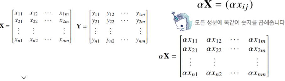 - 벡터의 원소 → 숫자, 행렬의 원소 → 벡터
